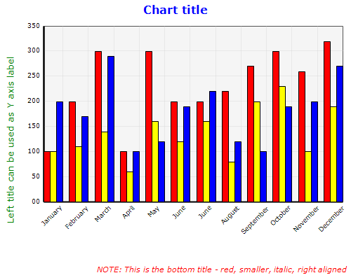Winnovative control offers the possibility to set 4 titles of the chart (top, bottom, left and right). For each title, you can specify the text, font, color and alignment.